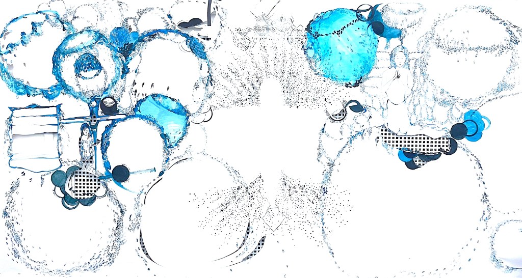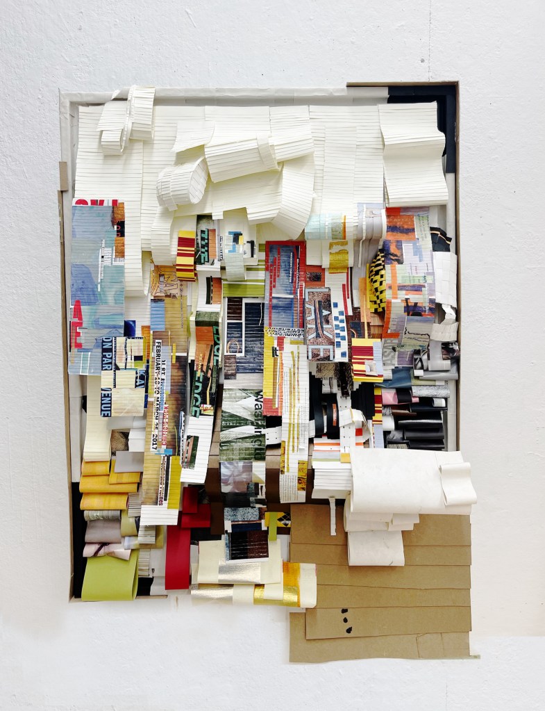 Inner Cities and Habitats III Paper, Magazine Collage, Cardboard, (24″x36″) March 2023